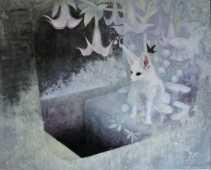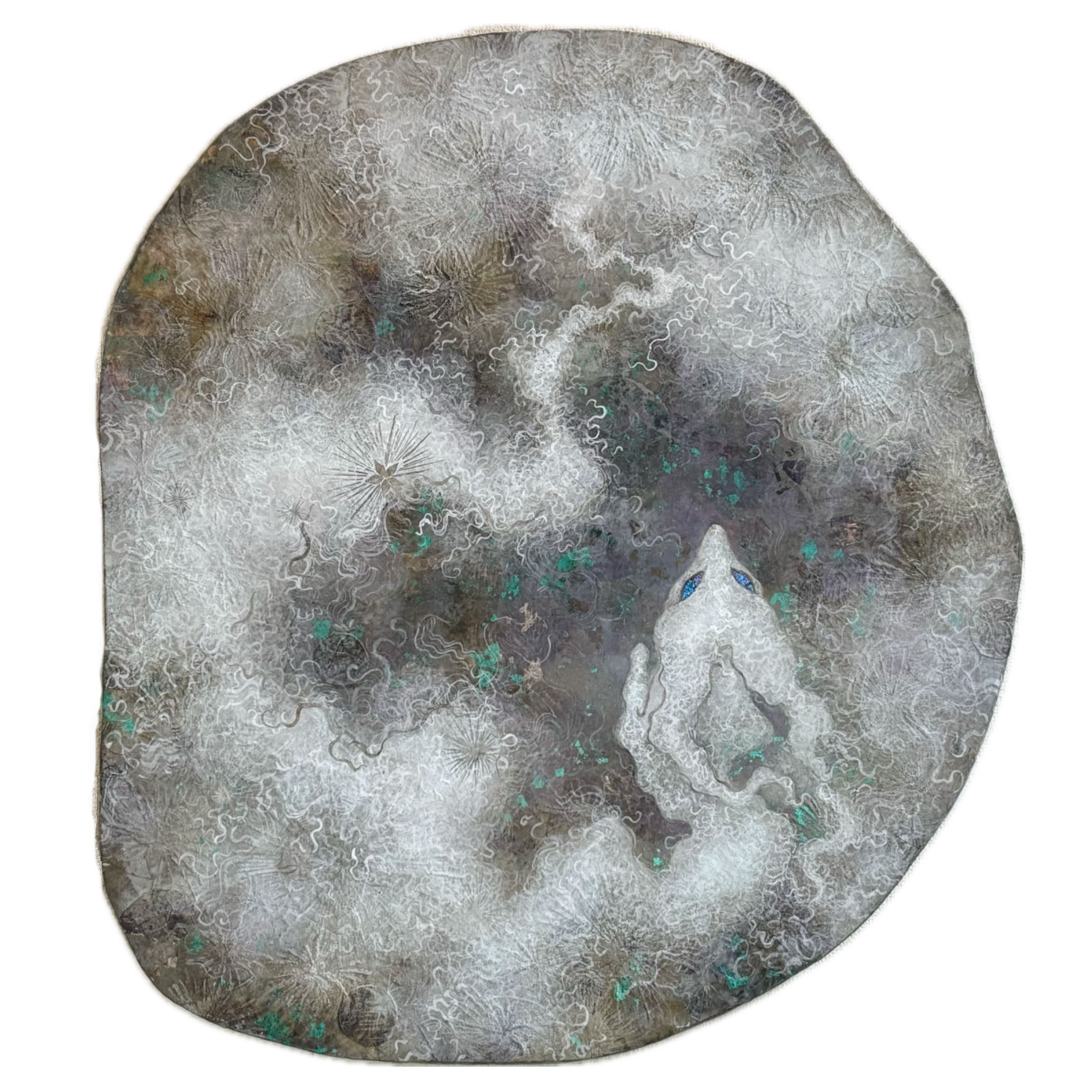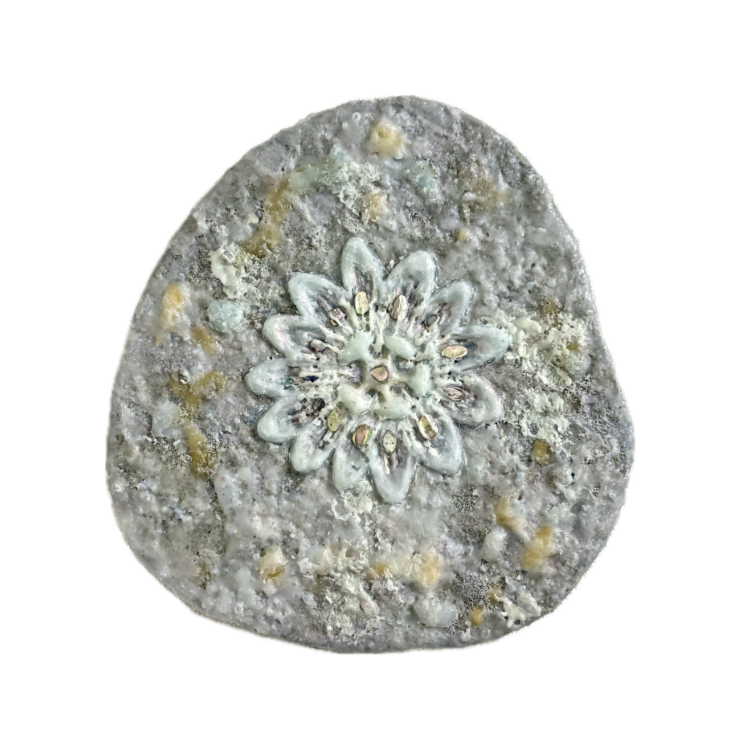 狐石-舞香花』約57×52(㎝)<br> 花も狐も虫も幸せも水に溶け 遠い遠い未来に結晶になる