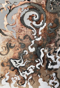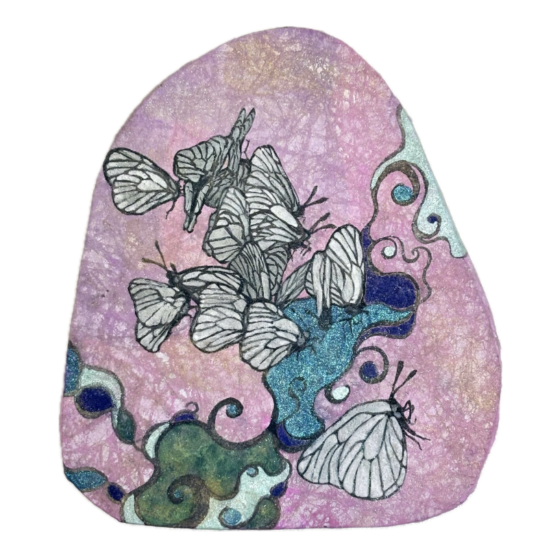 『雲石~オオゴマダラ』 約25×52(㎝)<br>美しい黄金のまま 終わる事だって ひとつ<br>第77回中美展入選作品