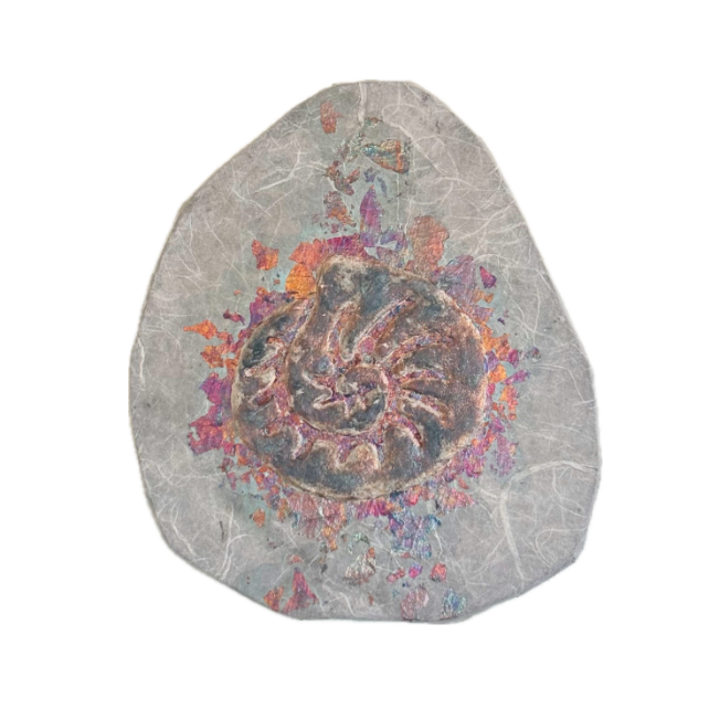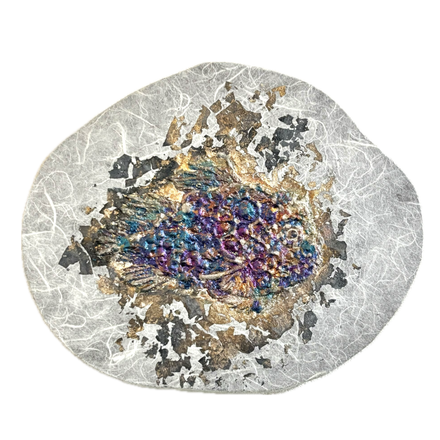 『煙石-ダンゴウオ』約15×23(㎝)<br>新種のたい焼き純銀硫黄焼き