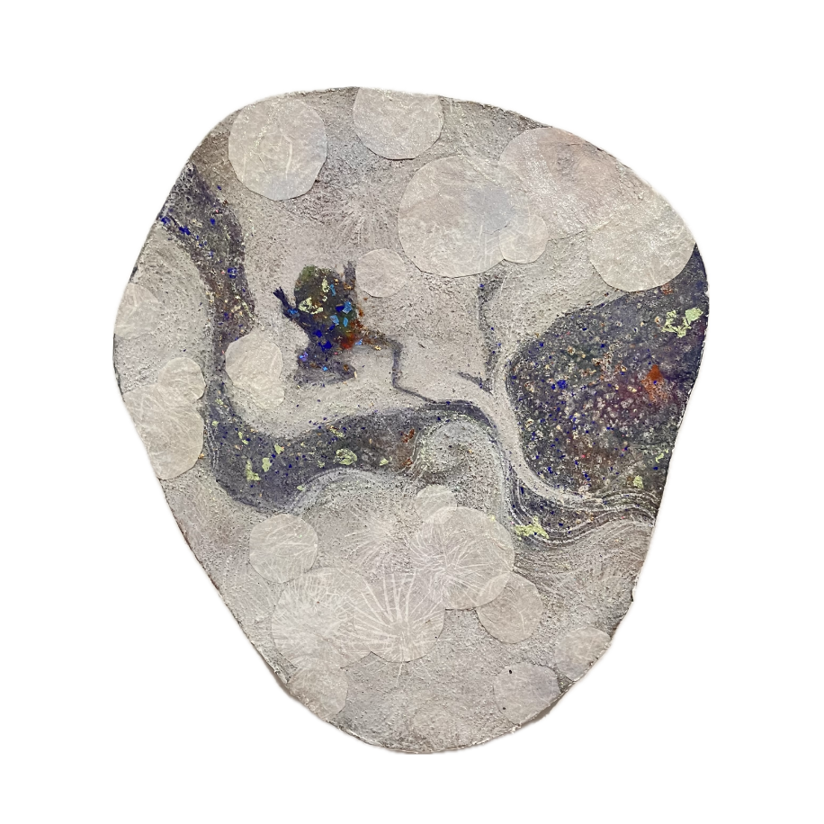 『狐石-舞香花』約57×52(㎝)<br> 花も狐も虫も幸せも水に溶け 遠い遠い未来に結晶になる